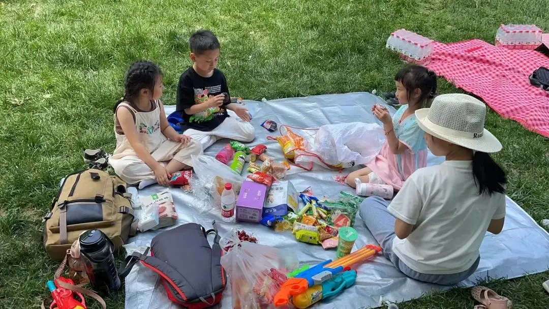 登山结束,相约天池湖畔,席地而坐,吹着夏日的微风,品尝美食,畅所欲言,等待同伴们前来集合拍照留念。